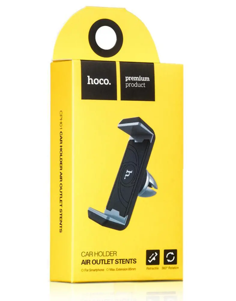 βάση Στήριξης Αεραγωγού Αυτοκινήτου Hoco CPH01 Μαύρη – Γκρι, με δυνατότητα περιστροφής 360ο, ελαφρύ και μικρό σε μέγεθος για συσκευές έως 5.5’’. Είναι εύκολο στην χρήση και ανθεκτικό, παρέχοντας μεγαλύτερη ασφάλεια την ώρα της οδήγησης.
