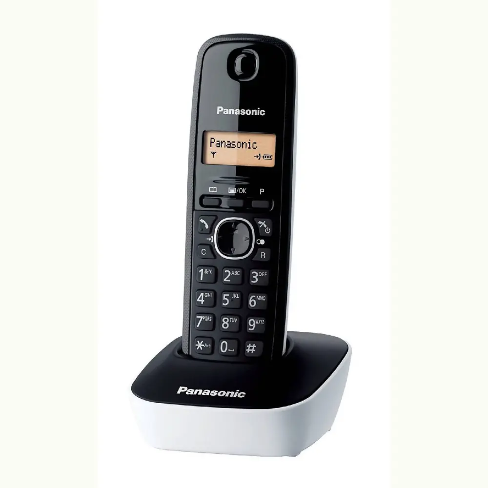 Ασύρματο Ψηφιακό Τηλέφωνο Panasonic KX-TG1611GRW Μαύρο-Λευκό. Κομψό και εύχρηστο το ασύρματο τηλέφωνο της Panasonic. Το φινίρισμα του ακουστικού σχεδιάστηκε ώστε να δένει αρμονικά με μοντέρνους και κομψούς χώρους. Το περίβλημα του έχει σχεδιαστεί ώστε να είναι ανθεκτικό στις δακτυλιές για να διατηρείται καθαρό. Όπως και τα έπιπλα, η τηλεφωνική συσκευή είναι ένα σημαντικό κομμάτι του χώρου σας. Μπορείτε να αλλάξετε την ατμόσφαιρα στο χώρο, επιλέγοντας το χρώμα του τηλεφώνου σας.