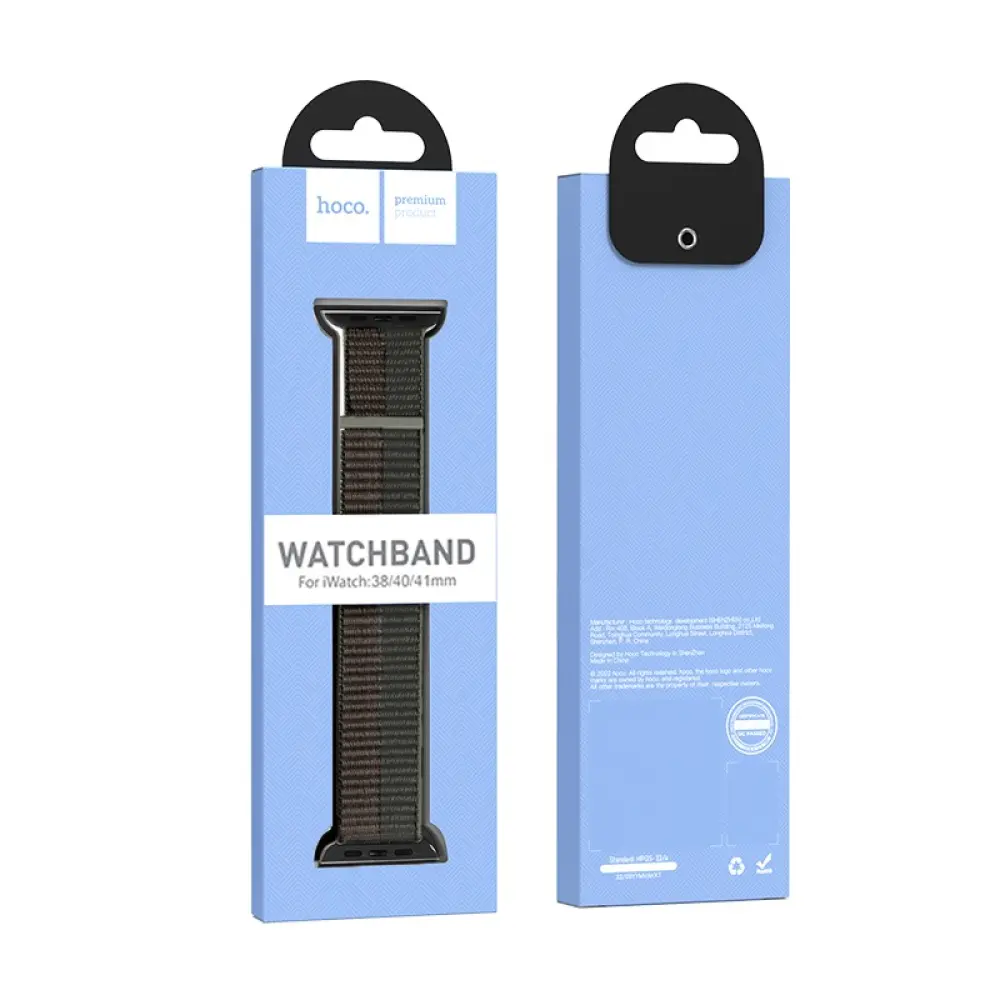 Watchband Hoco WA02 38/40/41mm από Nylon για Apple Watch series 1/2/3/4/5/6/7/8/SE. Κατασκευασμένο από νάιλον διπλής στρώσης, λεπτά υφασμένο, απαλό και αναπνεύσιμο, με κούμπωμα για εύκολη και γρήγορη ρύθμιση.