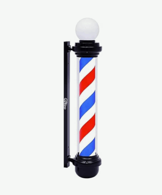 Barber pole με μαύρες λεπτομέρειες και λάμπα